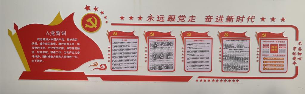 体育部党开辟党建宣传墙,助推党建文化建设。“七一”前夕,体育部党总支在党员活动室新设计安装了党建宣传墙,主要内容有:入党誓词、党章党纲、新形势下党内政治生活若干准则等内容。