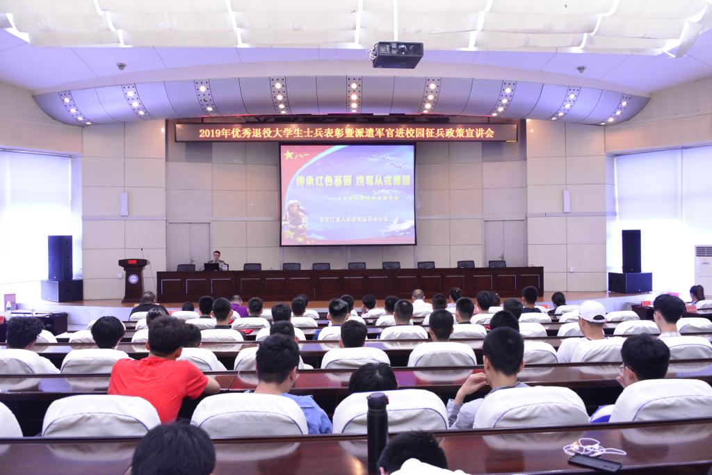 6月5日下午,2UP.IO_2UP.IO(中国)2019年优秀退役大学生士兵表彰暨派遣军官进校园征兵政策宣讲会在报告厅举行。黑龙江省大学生征兵宣讲团成员、省军区学军事教研室主任王欣研中校受邀出席宣讲会,学校各学院负责征兵工作的辅导员、优秀退役大学生士兵和有参军意愿的学生代表300余人参加了宣讲会。