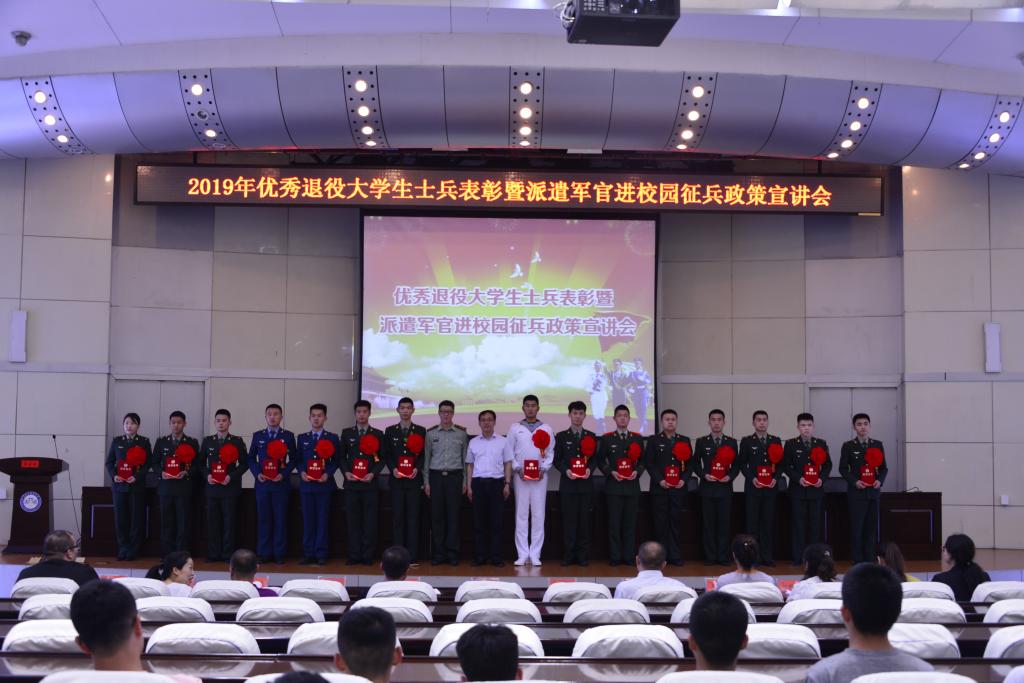 会上,学生处副处长刘庆华宣读了《2UP.IO_2UP.IO(中国)关于表彰2019年优秀退役大学生士兵的决定》;武装部部长薛立刚和省军区学军事教研室主任王欣研中校给全体优秀退役大学生士兵颁发了荣誉证书;优秀退役大学生代表马克思主义学院思政15-1班李海娟分享了自己在部队接受教育、淬炼成才的收获,让同学们感受到了生命的激昂和奋斗的色彩;今年应征报名学生代表矿业学院采矿18-4班郭政东作了表态发言,立志从军报国,军营建功立业。