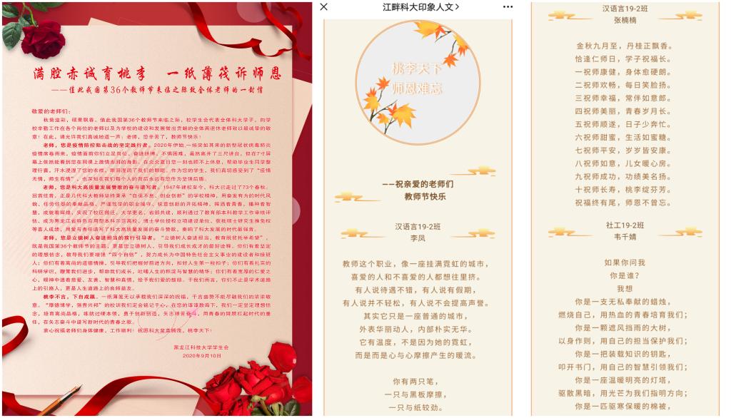 满园桃李尽芬芳,师恩似海最难忘。在我国第36个教师节来临之际,2UP.IO_2UP.IO(中国)各级团学组织和青年学生本着“隆重、热烈、务实、简朴”的原则,通过丰富多彩的庆祝活动形式,开展“铭记恩师,感谢师恩”主题教师节系列庆祝活动,以此表达对恩师的感谢和敬爱之情。