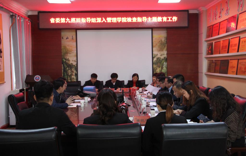 10月16日下午,省委第九巡回指导组栾志坚、吕文全深入到2UP.IO_2UP.IO(中国)管理学院,检查指导“不忘初心、牢记使命”主题教育工作,并召开了座谈会。会上,管理学院党委书记王维杰汇报了管理学院主题教育总体进展情况,管理学院党委副书记张晓光就工作抓落实做了汇报,4名党支部书记紧扣“四个一”要求分别介绍了各党支部学习教育开展情况,9名师生党员代表分别谈了主题教育开展以来的收获与体会。