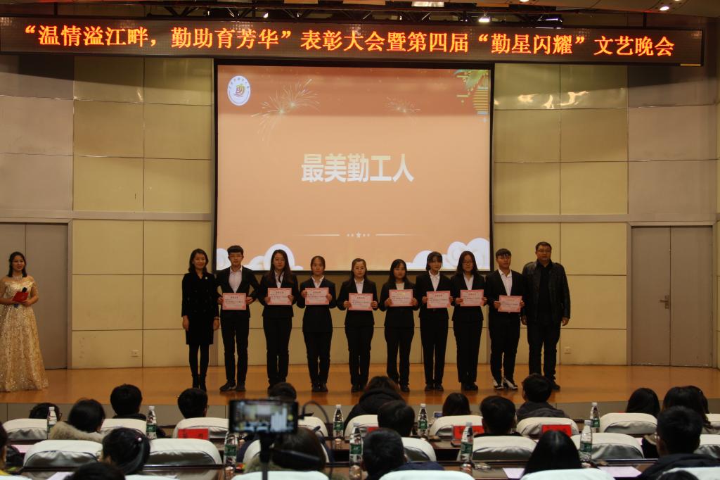 12月13日,学生处在办公楼报告厅举办了“温情溢江畔、勤助育芳华”表彰大会暨第四届“勤星闪耀”文艺晚会。学校党委常委、副校长于成学,学工部部长、学生处处长薛立刚,学工部副部长、学生处副处长曲长海、刘庆华,学工部副部长、校团委副书记苗雨,以及来自学生处、团委、各学院的老师和勤工助学学生共同出席晚会。