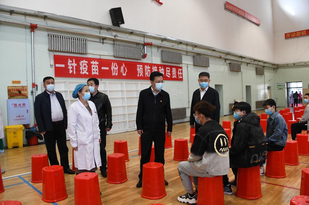疫苗接种当日,国家新冠病毒疫苗督导组一行到校检查指导疫苗接种工作。学校党委书记周宏力、校长郝传波、党委副书记于成学、副校长桑玉军等校领导先后到疫苗接种现场看望慰问工作人员和接种疫苗的师生。