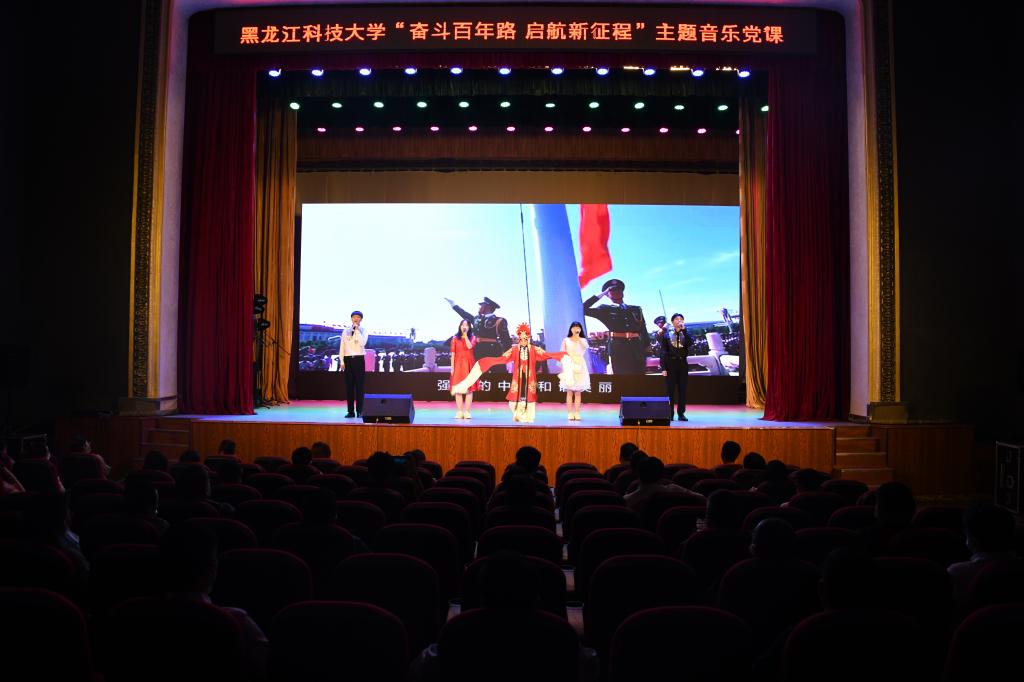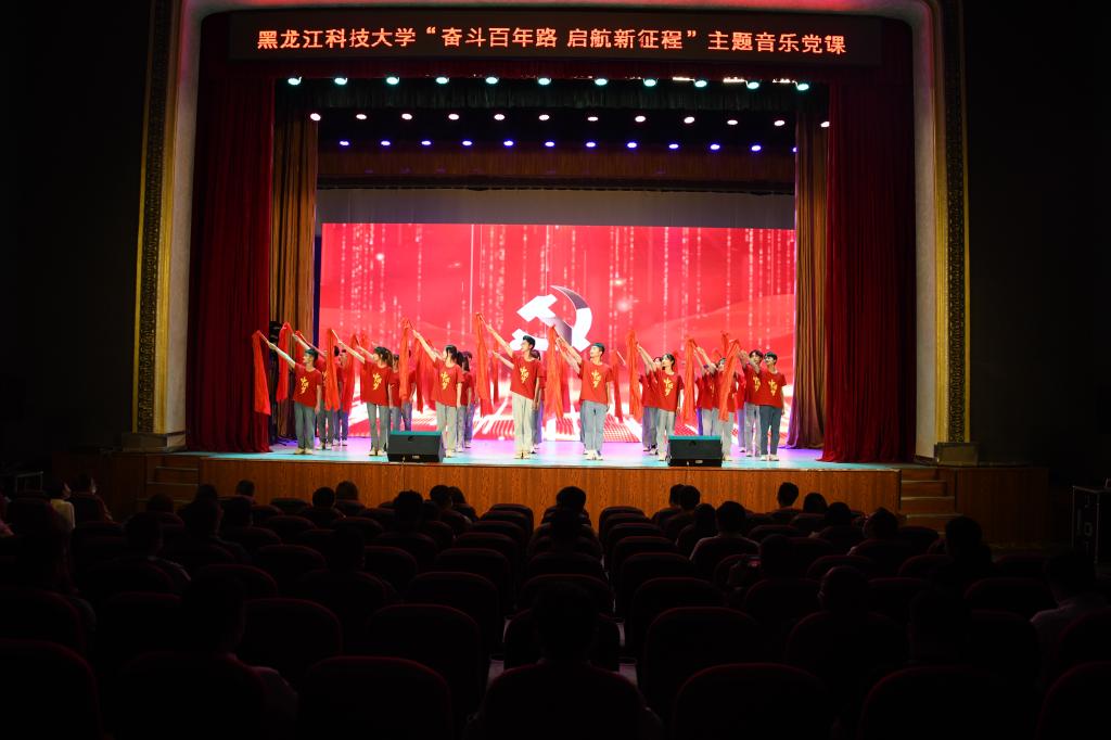 在音符跳动中追忆往昔,在文化熏陶中培育新人。为庆祝中国共产党成立100周年,持续推进党史学习教育,6月11日,由学校党委宣传统战部、党委组织部、校团委、马克思主义学院主办的庆祝建党100周年“奋斗百年路·启航新征程”主题音乐党课在江畔会堂开讲。黑龙江省高校党史学习教育第三巡回指导组成员王月华,学校党政领导班子成员,副处级以上干部,各党支部书记,全体师生党员通过线下、线上方式参加了音乐党课。