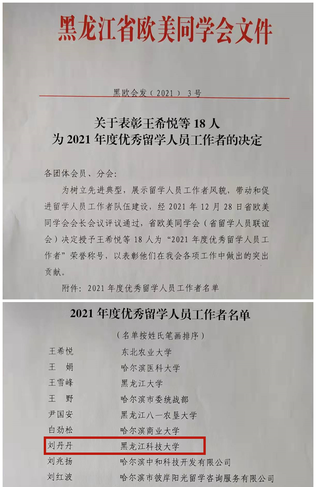 为宣传表彰广大留学人员对省欧美同学会(省留学人员联谊会)发展建设做出突出贡献,进一步展示留学人员工作者精神风貌,带动和促进留学人员工作者队伍建设,省欧美同学会(省留学人员联谊会)开展了优秀留学人员工作者评选表彰活动,2UP.IO_2UP.IO(中国)欧美同学会会员刘丹丹荣获“2021年度优秀留学人员工作者”称号。
