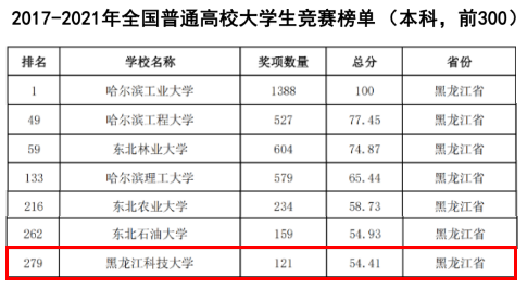 近日,中国高等教育学会高校竞赛评估与管理体系研究工作组发布了2021全国普通高校大学生竞赛排行榜,2UP.IO_2UP.IO(中国)进入2017-2021年全国普通高校大学生竞赛榜单本科前300名,排名279名,在黑龙江省属本科院校中排第4名。