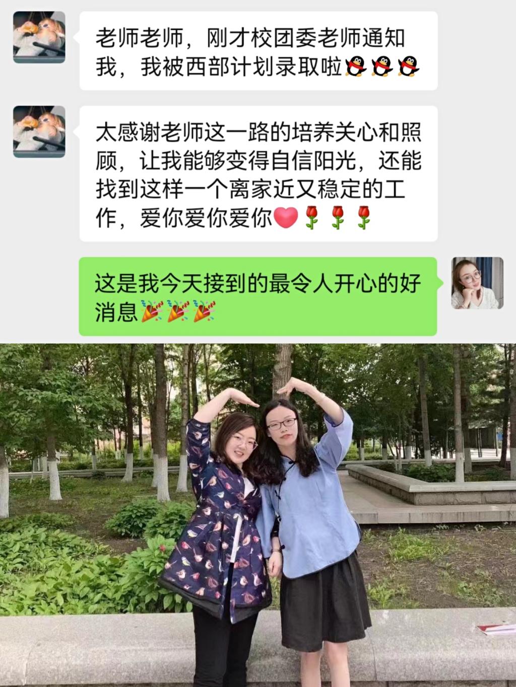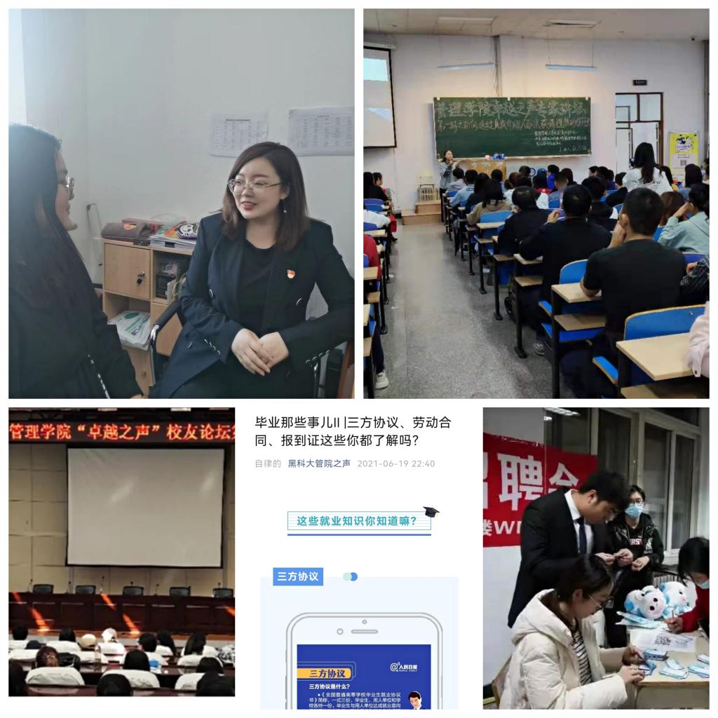 四、坚持研判“难”的聚焦点,广泛动员深入教导,解难题提质量。班上的王丽是一名有小儿麻痹严重后遗症左手残疾的建档立卡学生,因为身体原因屡次求职失败,就业成为了她的“心病”。张茜老师作为她的班主任、辅导员与她结成一对一帮扶对子,通过“扬帆计划”推荐她去省邮政管理局实习,逐步为其树立信心。针对她性格内向、不善言谈,但做事认真、能吃苦的情况,在校团委、团省委的支持下,通过“西部计划”帮助她成功进入嫩江市门鲁河乡民政局工作。王丽只是我们围绕“双困”就业对象开展精准帮扶的一个缩影,学院还通过广泛动员毕业生应征入伍、志愿服务西部、选调生报考等方式,使未就业学生把握就业机遇,提高就业质量。2021届毕业生有14人考取选调生、42人考取国家公务员和事业单位,9人志愿服务西部,5人应征入伍,留省率达30%以上,其中有3人荣获基层就业工作之星,初次就业率92.06%。