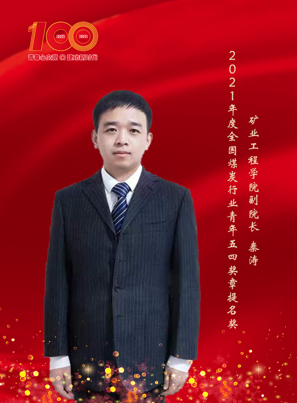 编者按:“牢记党的教诲,立志民族复兴,不负韶华,不负时代,不负人民,在青春的赛道上奋力奔跑,争取跑出当代青年的最好成绩!”五四青年节前夕,习近平总书记寄语广大青年,凝聚起踔厉奋发、勇毅前进的青春力量。逐梦百年路,奋斗向未来。为喜迎党的二十大,集中展示新时代黑2UP.IO_2UP.IO(中国)青年的精神品格和价值追求,树立政治进步、品德高尚、事迹突出的优秀青年典型,不断团结引领广大青年永远跟党走、奋进新征程,特推出五四先优风采录。今天推出五四先优风采录第一期,全国煤炭行业青年五四奖章提名奖、矿业学院副院长秦涛。