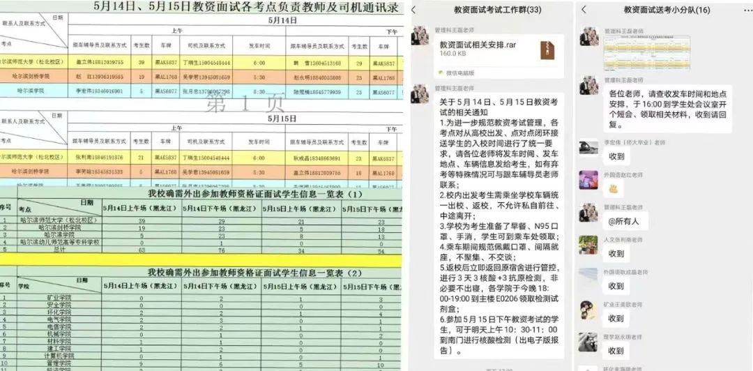 超前谋划,精心设计,用心办实事。学校结合黑龙江省教育厅对于考试要求,组织召开专项会议,周密部署、明确分工。学生处提前与考点沟通,根据实际情况设计闭环接送路线,建立考生信息台账、教资面试专项工作群、考试接送站服务群,辅导员点对点与学生确认考试信息、叮嘱备齐考试材料、告知接送安排。