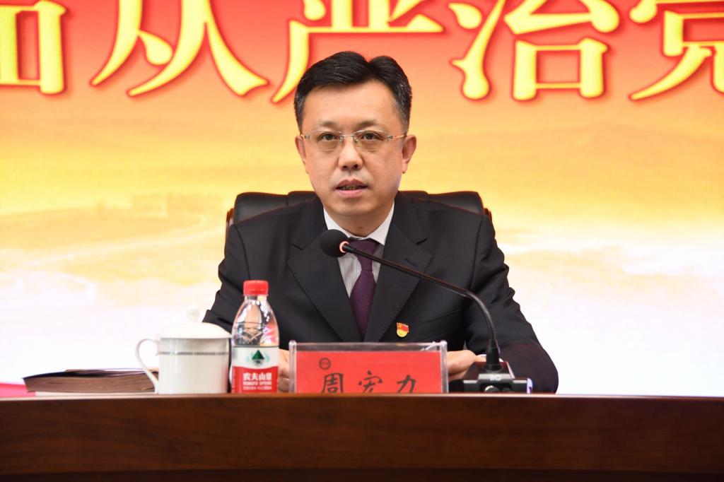 周宏力强调,全校各级党组织和党员干部要坚持以习近平新时代中国特色社会主义思想为指导,认真贯彻落实中央、省委和省委教育工委的决策部署,坚持严的主基调不放松,以高质量发展为主题,以“能力作风建设年”为载体,进一步压紧压实管党治党、办学治校主体责任,把全面从严治党融入日常、抓在经常,以全面从严治党新成效为推动学校事业高质量发展提供坚强保证。一要坚定不移强化政治引领,着力发挥政治建设的统领作用,不断提高政治站位,全面提升政治能力,防范化解重大风险,坚决捍卫“两个确立”,忠诚践行“两个维护”。二要持之以恒强化思想建设,着力加强理想信念教育和思想政治工作,持续强化对师生员工的正向引领,坚定不移用党的创新理论铸魂育人,推进党史学习教育常态化长效化。三要全面从严强化组织建设,着力完善“组织健全、上下贯通、执行有力”的组织体系,积极打造“标杆院系”“样板支部”,持续加强干部队伍建设,大力推动学校基层党建工作全面提质增效。四要一以贯之正风肃纪反腐,着力加强能力作风建设,持续强化纪检监察工作,一体推进“三不”体系建设,系统施治、标本兼治,巩固风清气正政治生态和良好校园氛围,以实际行动和优异成绩迎接党的二十大胜利召开。