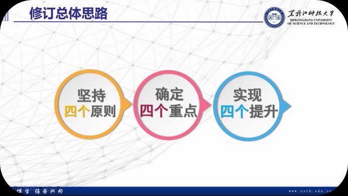 校长孟上九指出,在本科人才培养方案修订过程中,为适应区域经济社会发展需求,要深化四个融合。一是科教融合,要加强科研与教学融合,推动学科专业一体化建设,把优质科研资源转化为育人资源;二是学科融合,要强化跨学科交叉,促进理工、文工融合,加强学生综合素质培养;三是专创融合,打造专业教育与创新创业教育相融合的实践教学体系,把创新创业教育充分融入到本科人才培养全过程;四是产教融合,要构建产学研用一体化平台,持续推进产业学院内涵建设,围绕产业链打造特色优势专业。