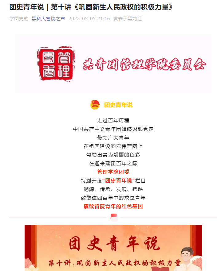 传递正能量,网络思政守正初心。校团委紧紧围绕建团一百周年、2022届毕业生离校等重要时间节点,依托网络思想政治教育阵地,通过官方微信视频号,推出合唱作品《如愿》、《错位时空》、社团成立27周年文艺汇演短片等系列微视频,不断传递青春正能量;管理学院团委推出“团史青年说”系列节目,进一步激发广大团员青少年爱党爱国热情,提升共青团的凝聚力和吸引力;电信学院开展“与祖国共奋进,用青春谱华章”网络活动,让广大青年学生以时代为背景,以先辈为榜样,以红色为信仰,努力奋进;马克思主义学院团委开展“与信仰对话,为青春导航——学习党的青年运动史”分享活动,同学们利用课余生活,分享青年运动史,分享所学、所思、所悟、所感,不断提升思想文化境界。