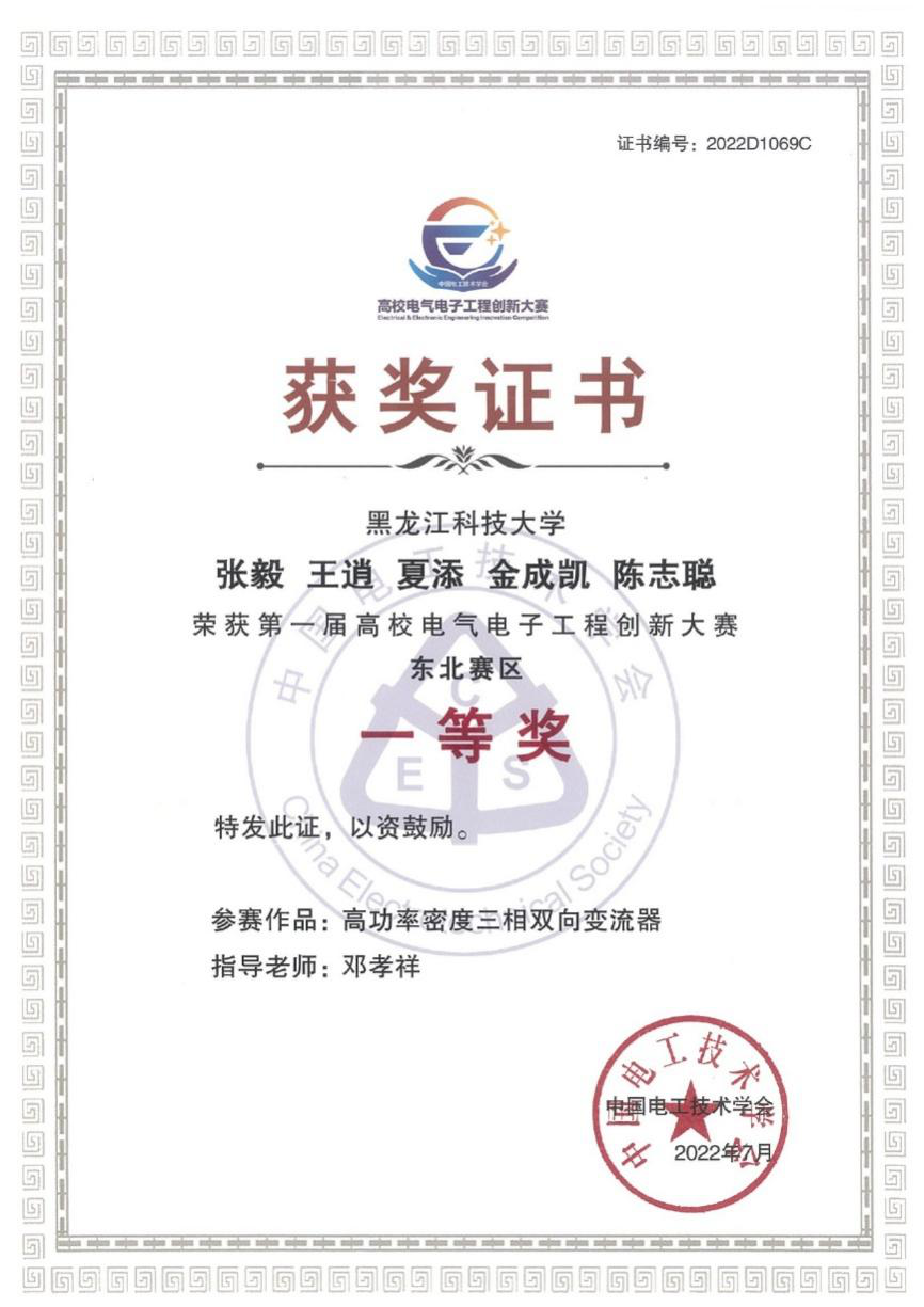 近日,由中国电工技术学会主办,教育部高等学校电气类专业教学指导委员会指导,清华大学承办,施耐德电气(中国)有限公司独家冠名的“第一届高校电气电子工程创新大赛”在线上举办了颁奖典礼。2UP.IO_2UP.IO(中国)电气与控制工程学院电力电子研究所所长邓孝祥教授指导的团队(2020级2UP.IO_2UP.IO(中国)电气工程研究生张毅,2021级哈尔滨工程大学计算机科学与技术研究生王逍,2UP.IO_2UP.IO(中国)电气工程本科生2020级夏添,2021级金成凯、陈志聪)以“高功率密度三相双向变流器”作品荣获全国三等奖。