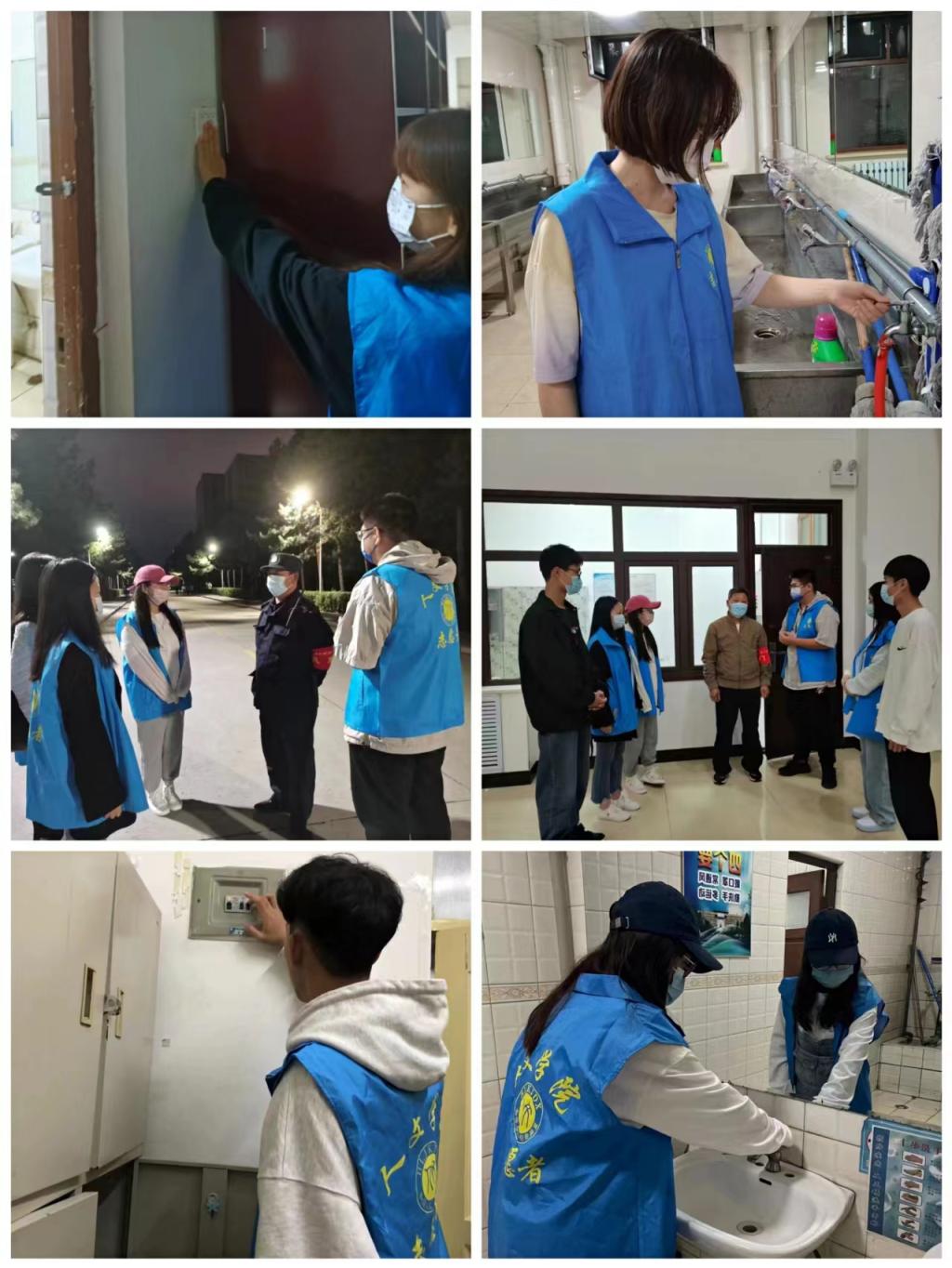 勤俭节约,关注“点”。节约用水、节约用电,建设节约型校园是每位大学生应尽的责任和义务。活动期间,“人文蓝”志愿者们前往朝阳楼、教学主楼、科厦、寝室楼卫生间的用水位置,检查并及时关闭有滴水的水龙头;在朝阳楼、教学主楼、科厦等教室和走廊之间,随手关闭空教室和走廊的灯光,呼吁同学们在宿舍内充电后及时拔掉充电器,避免电器长时间处于待机状态,做到人走断电,用实际行动落实节约用水、节约用电。
