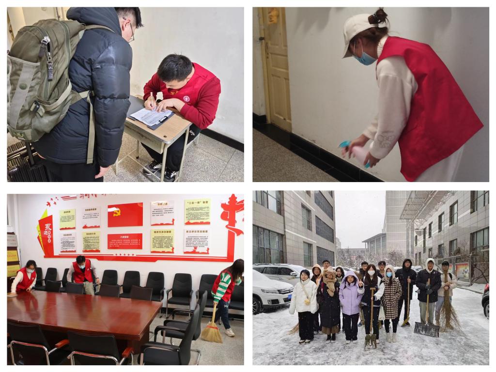 凝聚先锋力量,弘扬雷锋精神。结合春季返校疫情防控“乙类乙管”新部署、新要求,充分发挥学院学生党员先锋岗作用,主动亮身份、做表率,学生党员志愿服务队“青年先锋号”活跃在春季返校、寝室消杀等重要环节;不断激发青年学生“主人翁”意识,涵养爱校荣校之情,以劳动教育为契机,组织我院青年学生开展清雪除冰志愿活动、教室清扫活动。