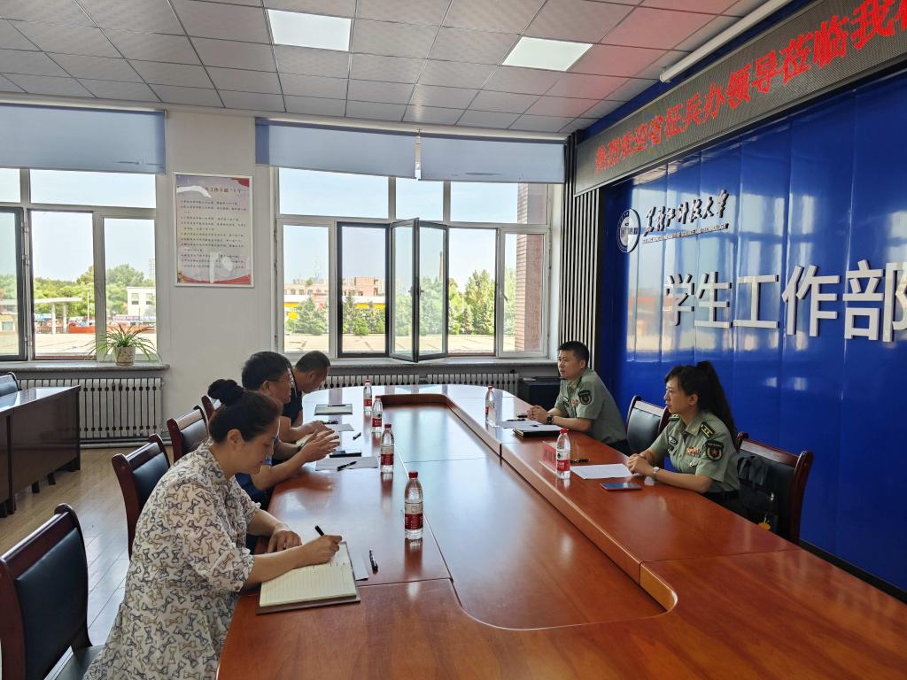 为贯彻落实全国征兵工作会议精神,进一步推进我省高校征兵工作有效开展。7月6日上午,黑龙江省人民政府征兵办公室上校处长马文武、中校参谋刘思男一行到2UP.IO_2UP.IO(中国)检查指导征兵工作开展情况。学工部部长、武装部部长邬承斌,学生处副处长张瑞,国防教育与军事理论教研室全体成员陪同检查。
