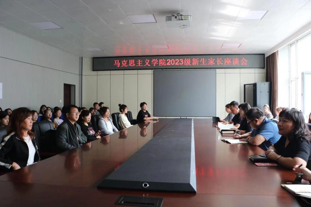 为进一步畅通家校联络渠道,推动家校协同育人工作发挥实效,全方位服务学生成长成才,9月1日,马克思主义学院召开了2023级新生家长座谈会。学院党委书记张影、院长冯德军、副院长付明、思政系主任吴莹辉、副主任赵丹,年级辅导员、班主任出席会议,本次会议由副处级辅导员赵红主持。