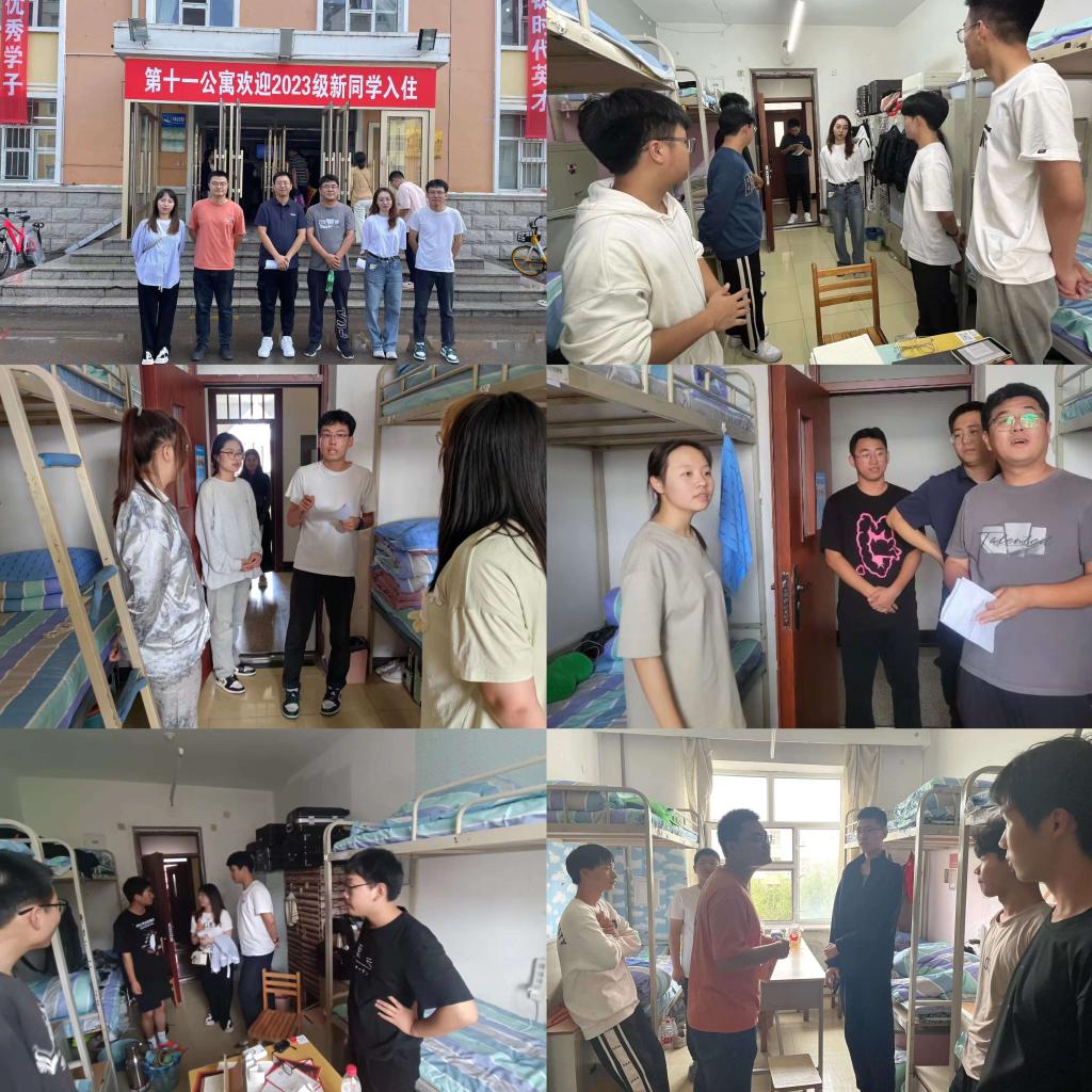 贴“心”安排·辅班联动共呵护。辅导员刘鑫鹏带领所有新生班主任,一起深入学生寝室,详细询问新生进校后的感受、饮食、住宿等方面的生活情况。并认真倾听了他们的想法,回答了各种生活、学习上的问题。希望新生们以积极的心态和良好的面貌尽快适应大学校园生活,细心叮嘱了宿舍用电安全、外出交通安全、人身财产安全等问题。