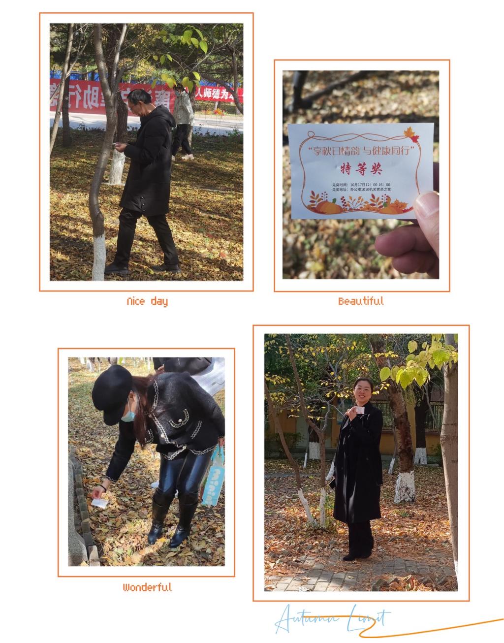本次活动分为知识竞猜、寻宝和摄影作品征集三个环节。在知识竞猜环节,通过抽签答题,进一步深化了广大职工对党的二十大精神、习近平总书记视察我省时重要讲话重要指示精神和中国工会十八大精神学习的效果。在寻宝环节,机关干部职工热情高昂,纷纷走出办公楼、走向树林草地,一边赏秋风落叶、一边寻角落宝藏,交流工作生活、分享寻宝快乐、感受组织温暖,最终共产生特等奖6名,一等奖10名,二等奖20名,三等奖40名,参与奖若干。在摄影作品征集环节,大家感受浓浓秋意,一边观赏校园美景,一边记录美丽瞬间,多角度拍摄洒满落叶的草地、瑟瑟发抖的秋风、行色匆匆的人群、层林尽染下的建筑。经过认真评选,共产生一等奖3名,二等奖6名,三等奖10名,优秀奖若干。