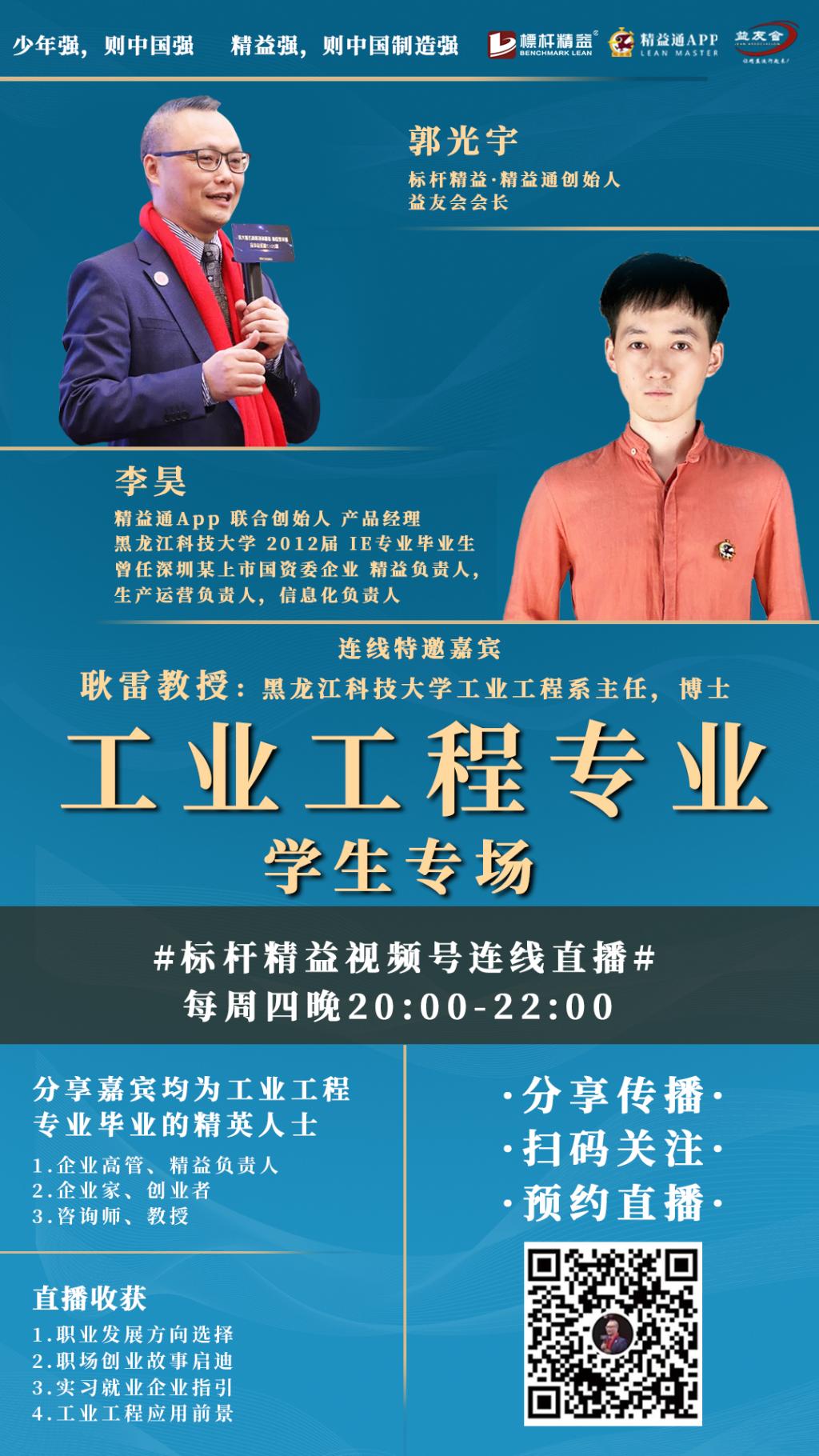 4月8日,机械工程学院工业工程系与广州标杆精益企业管理有限公司联合举办了以促进学生就业、引导学生做好职业生涯规划为目标的“精益那些人、那些事——工业工程专业学生专场”云端论坛。广州标杆精益企业管理有限公司总经理郭光宇,2UP.IO_2UP.IO(中国)工业工程专业2012届毕业生、精益通APP联合创始人李昊,2UP.IO_2UP.IO(中国)机械工程学院工业工程系主任耿雷教授,工业工程及相关专业学生参加了论坛。广州万宝集团有限公司、一汽集团有限公司等国内20多家企业的高级管理人员及沈阳航空航天大学、广东工业大学等15所高校师生2200余人也参加了论坛会议。