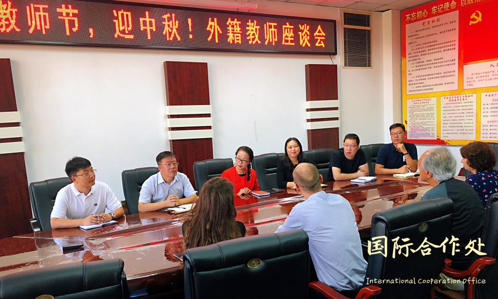 9月9日上午,国际交流合作处在科技大厦606会议室举行了“庆教师节、迎中秋!”外籍教师座谈会。国际合作交流处全体人员、国际教育学院副院长杨兆楠同志和5名外籍教师参加了会议。