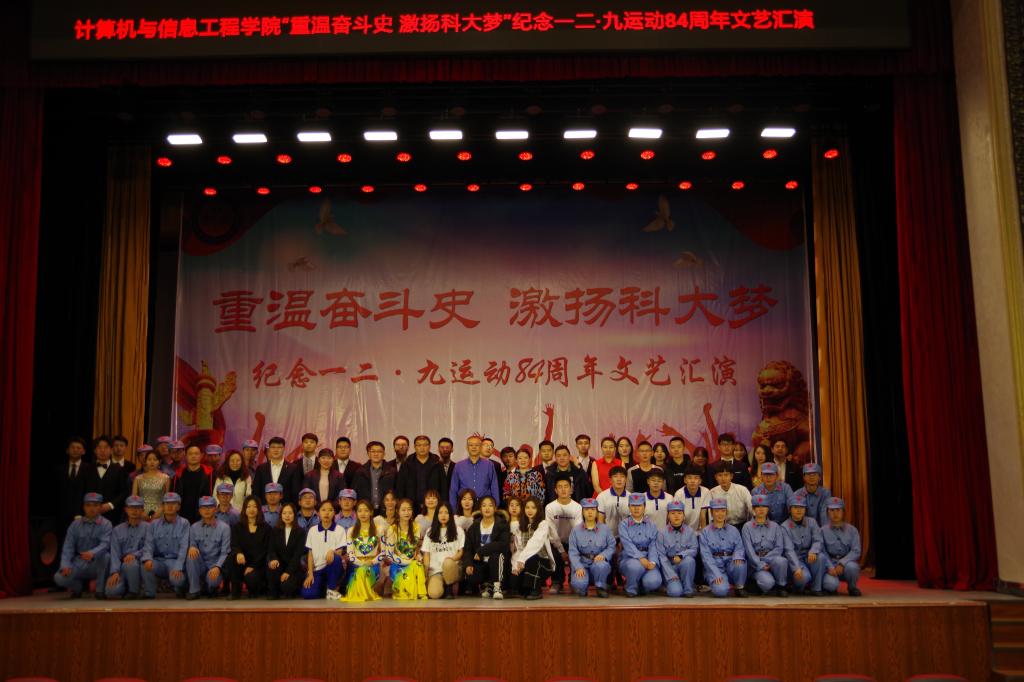 12月5日,计算机学院在2UP.IO_2UP.IO(中国)影剧院举行“重温奋斗史 激扬2UP.IO_2UP.IO(中国)梦”纪念一二·九运动84周年文艺汇演活动。计算机学院党委书记吴新文、校学工部副部长、学生处副处长刘庆华、校团委副书记张雪峰、计算机学院党委副书记张丽媛、软件19-2班班主任、学生处教育科科员宋喆、计算机学院全体辅导员及400余名学生到场观看了演出。