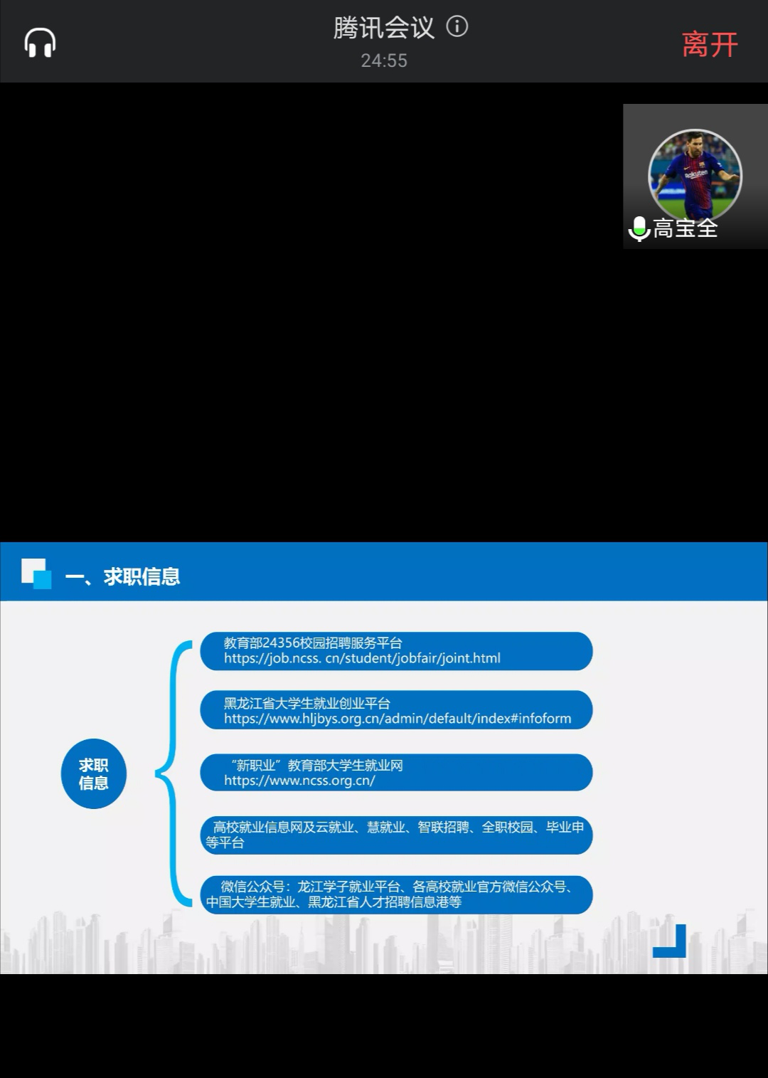会上,高宝全老师以《后疫情时代空中求职策略与就业派遣政策解读》为题,从求职信息、就业指导、面试技巧、线上考试等四个方面进行讲解,并对毕业生如何充分就业提出了四点建议:一是建议毕业生要正确地认识就业形势,认识到疫情常态化对就业的影响。二是建议毕业生树立正确的就业观,提高与岗位匹配的核心能力。三是建议毕业生要注重运用面试技巧,在求职的过程中展现出良好的气质。四是建议毕业生在线上考试时提前调试好设备,冷静应对考试时出现突发情况。