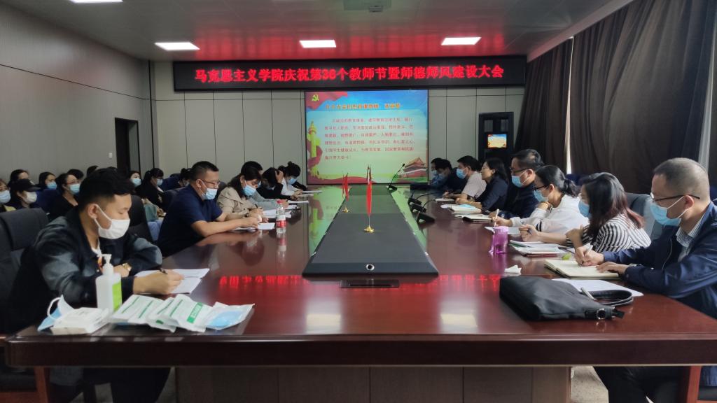9月10日下午,马克思主义学院在科技大厦高层会议室召开庆祝教师节暨师德师风建设大会,学院全体教职工参加会议。