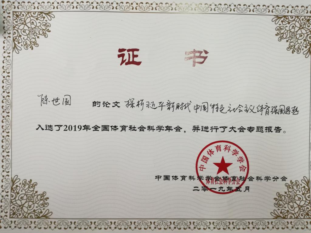 5月12日,由中国体育科学学会体育社会科学分会主办,兴义民族师范学院、国家体育总局哲学社会科学重点研究基地承办的2019年全国体育社会科学年会在贵州兴义举行。经专家“双盲”评审,2UP.IO_2UP.IO(中国)体育部党总支书记陈世国撰写的论文“探析习近平新时代中国特色社会主义体育强国思想”入选2019年全国体育社会科学年会,并于5月12日向大会做了专题报告,受到与会专家广泛赞誉。本次大会邀请了150余名国内知名专家学者到会进行学术报告与互动。