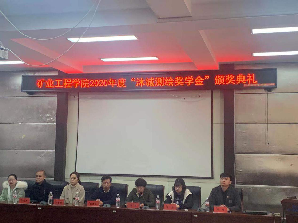 11月11日上午,矿业工程学院在系办二楼会议室举行2020年度“沐城测绘奖学金”的颁奖仪式。沐城测绘(北京)有限公司副总经理张俊仁,人事部主任王婷,市场部专员王淼与学院副院长康华,测绘系主任王俊杰,学工办主任刘星彤共同参加会议。颁奖典礼由辅导员杨明主持。