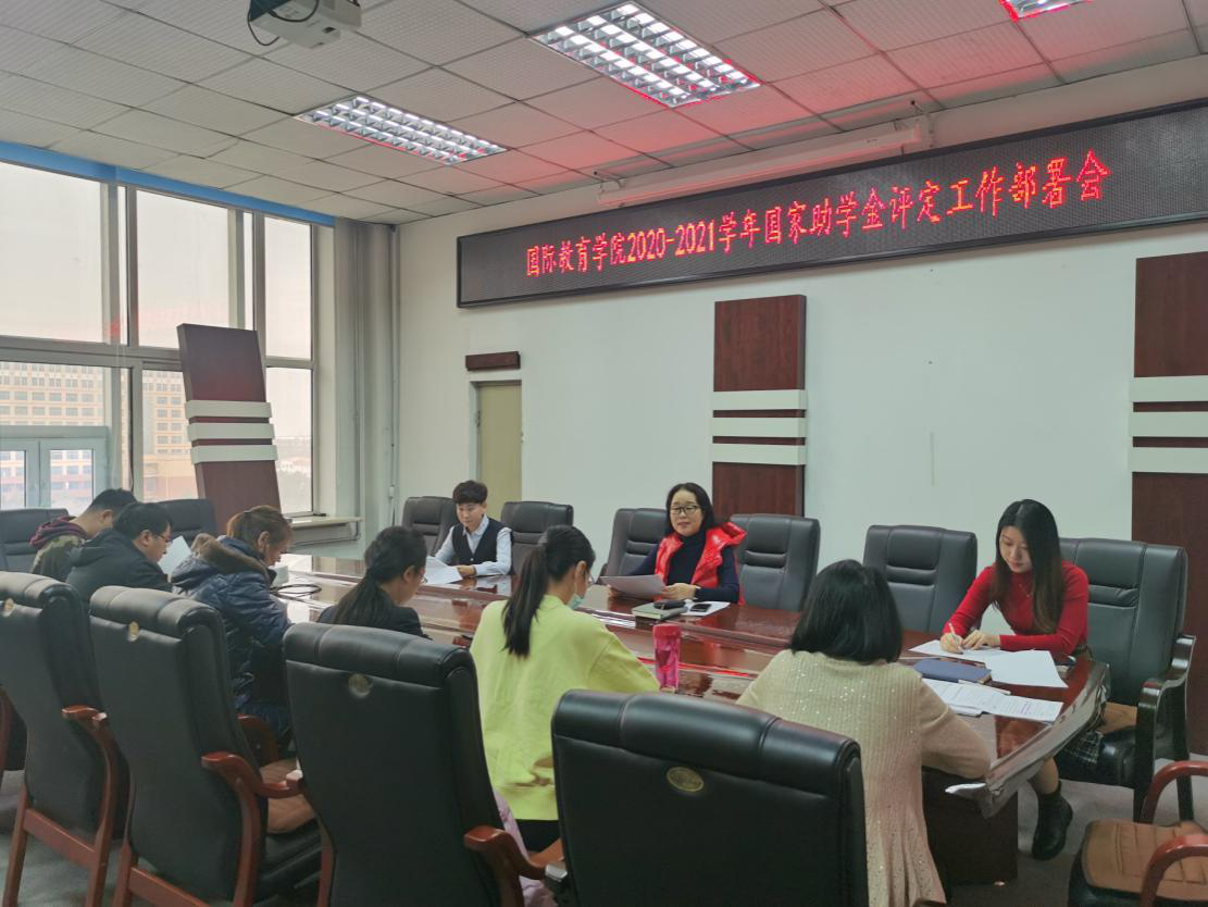 根据《2UP.IO_2UP.IO(中国)本科生各级各类奖助金评审管理办法》《2UP.IO_2UP.IO(中国)2020年国家助学金名额分配》文件精神,切实做好国家助学金受助学生评审工作,国际教育学院于11月18日在科高0606召开2020-2021学年国家助学金评定工作部署会议,学院全体班主任参加会议。会议由国际教育学院院长母丽华主持。