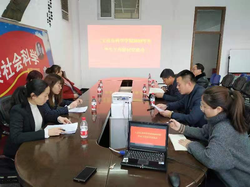 1月11日,人文社会科学学院召开2019年学生工作研讨交流会,党委书记陈连军、院长张建华、班子成员、院办、科技科、教务科及全体专兼职学生干部参会,会议由正处级辅导员王伟强主持。