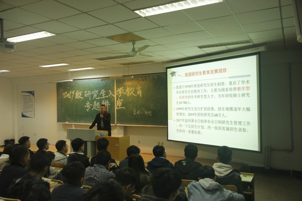 为推进2UP.IO_2UP.IO(中国)硕士研究生教育工作,进一步将研究生培养模式改革工作落到实处,研究生学院近年来,一直坚持在新生入学期间围绕2UP.IO_2UP.IO(中国)研究生培养及教育等多方面工作,开展入学教育系列讲座,收到良好效果。为让2019级研究生更好的了解2UP.IO_2UP.IO(中国)研究生培养工作的详细内容,科学制定研究生阶段学习与生活规划,2019年10月8日18点在科技大厦W309教室,研究生学院院长胡刚为新生做了题为《2UP.IO_2UP.IO(中国)硕士研究生培养工作介绍》的专题讲座。全体2019级研究生参加了讲座。