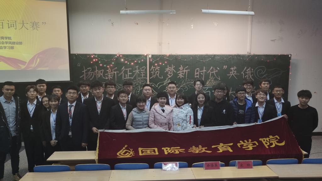 11月13日,国际教育学院在主楼ES0303举办“扬帆新征程,筑梦新时代”英、俄百词大赛。国际教育学院学工办主任徐海英、教学秘书邱曼丽、辅导员宋烨及2019级全体新生、学院团学组织干部参加了本次活动。