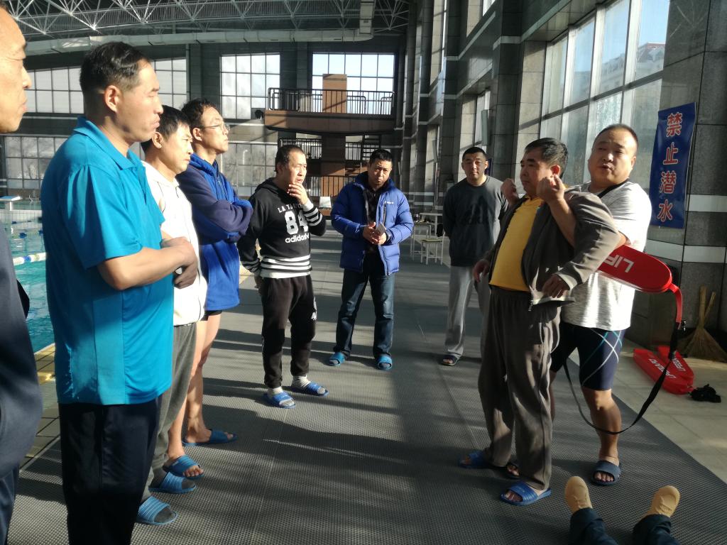 体育部主任甄子会在总结交流中指出:保障师生员工的生命安全是救生员的神圣职业和光荣使命,也是我们游泳馆工作的重中之重,生命面前无小事,所以大家在工作中必须要集中精力,时刻保持警惕,危急时刻要冲得上去,救得回来,要绝对保证师生员工的安全,同时要求救生员平时一定要多学习急救知识,不断提高泳池急救能力和水平,游泳馆要固定时间每两周进行一次救生演练,必须让每个救生员熟练掌握救生技能,为师生安全保驾护航。