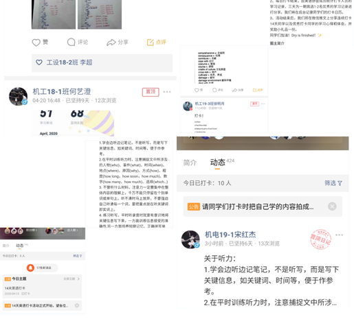 为提高学生对英语的兴趣,机械学院团委英语协会于4月10日开始举办“十四天英语学习打卡”学风建设主题教育活动。活动包括18级和19级学生,其中18级参与人数有53人,每天活跃人数有25人左右;19级参与人数有98人,每天活跃人数有40人左右。