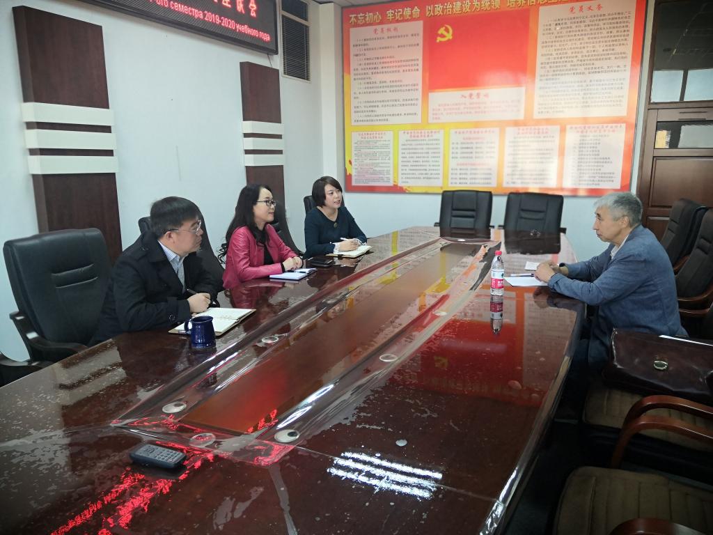 母丽华处长对项目负责人此次来访表示热烈欢迎,并对中俄建交70周年和两校合作办学20周年表示热烈的祝贺,同时对Баеханев先生20年来对我们两校合作办学项目的运行和发展所做出的努力和贡献表示诚挚的感谢。Баеханев先生对2UP.IO_2UP.IO(中国)的热情接待表示了感谢,并认为持续二十年的合作得益于中俄和两校深厚的友谊、两校历任领导的支持和相互理解,还有双方同事、教师的共同努力,今后我们还将继续努力把这个项目做好。