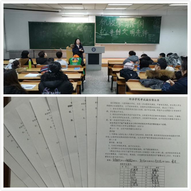 为进一步加强学风建设,严肃考风考纪,使全院大学生都能树立起诚信考试、公平竞争的意识,杜绝考试作弊和考试违纪行为,鼓励各班级营造良好的学习氛围,近期经济学院在全体学生中开展了考风考纪教育专题活动。