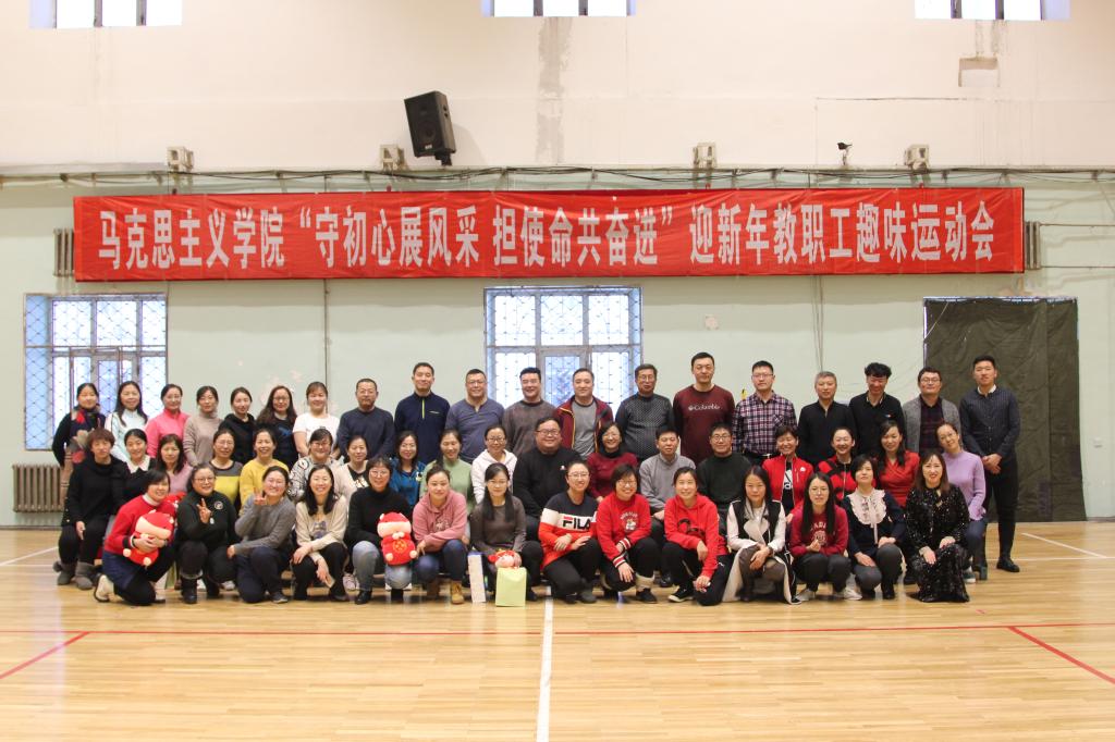 为丰富教职工的校园文化生活,展现教师健康向上、充满活力的精神面貌,喜迎2020年元旦的到来。12月30日下午,马克思主义学院“守初心展风采,担使命共奋进“迎新年教职工趣味运动会在学体育馆拉开帷幕。学院领导班子和全体教职工参加了趣味运会。