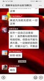 自新冠肺炎疫情爆发以来,学院建立起学院就业层级责任制和周报告制度,确保就业工作不断线。坚持落实班主任责任制,通过班主任深入班会、团活等形式全面了解毕业生当前状态,及时沟通,积极解决毕业生就业过程遇到的困惑。通过微信各专业群及时发布就业信息,分享应聘成功同学就业方法及经验,辅导员传授就业面试技巧等途径,为学生就业打通最后一公里。针对有切实实习需求的学生,学院严格落实四方联控机制,指定学生实习包保责任人,逐一电话与学生本人,学生家长及企业负责人沟通并建立密切联系。组建由年级辅导员,学生第一责任人,学生本人在群内的毕业生实习微信群,每日通报实习情况,确保实时掌握每名学生实习动态。