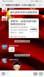 学院将思想价值引导融入学生德育教育,针对学生毕业前的德育总结及答辩,学院成立德育工作领导小组,因事而新的研讨德育答辩的工作思路,分专项设计了毕业生6个方向近200条的德育选题指南,全面引导学生系统的总结大学四年德育生活及实践。同时,德育工作领导小组针对疫情期间影响下带来的网络德育新挑战纳入学生德育教育新课题,进一步拓展了德育教育途径。通过学生党员、学生骨干带头线上参加青年大学习的学习,进一步提升学生学习热情,通过参与学院组织的“爱国主义”主题的班团活动,“清明文明缅怀”网络主题教育活动,进一步引导学生厚植爱国主义情怀,牢固树立“四个意识”,坚定“四个自信”做到“两个维护”。