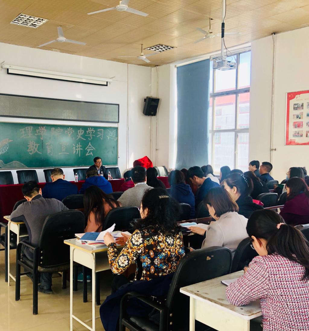 按照学院党史学习教育实施方案安排,理学院于4月7日在三楼会议室召开了党史学习教育宣讲会,特邀学校党史学习教育宣讲团成员、马克思主义学院连永新老师作专题辅导。学院领导班子成员、全体教师、学生党员和青年学生代表参加了本次活动,宣讲会由学院党委书记贺龙军主持。