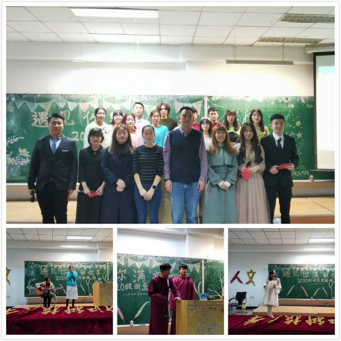 为迎接2020级新生的到来,使其更快的融入到人文学院的大家庭里,展现人文学子风采,10月29日晚学院在科厦S309举办“遇见你·满‘新’欢喜”迎新晚会。正处级辅导员王伟强、学工办主任张利南、辅导员韩雪、巩冬阳及2020级新生共同参加了本次晚会。