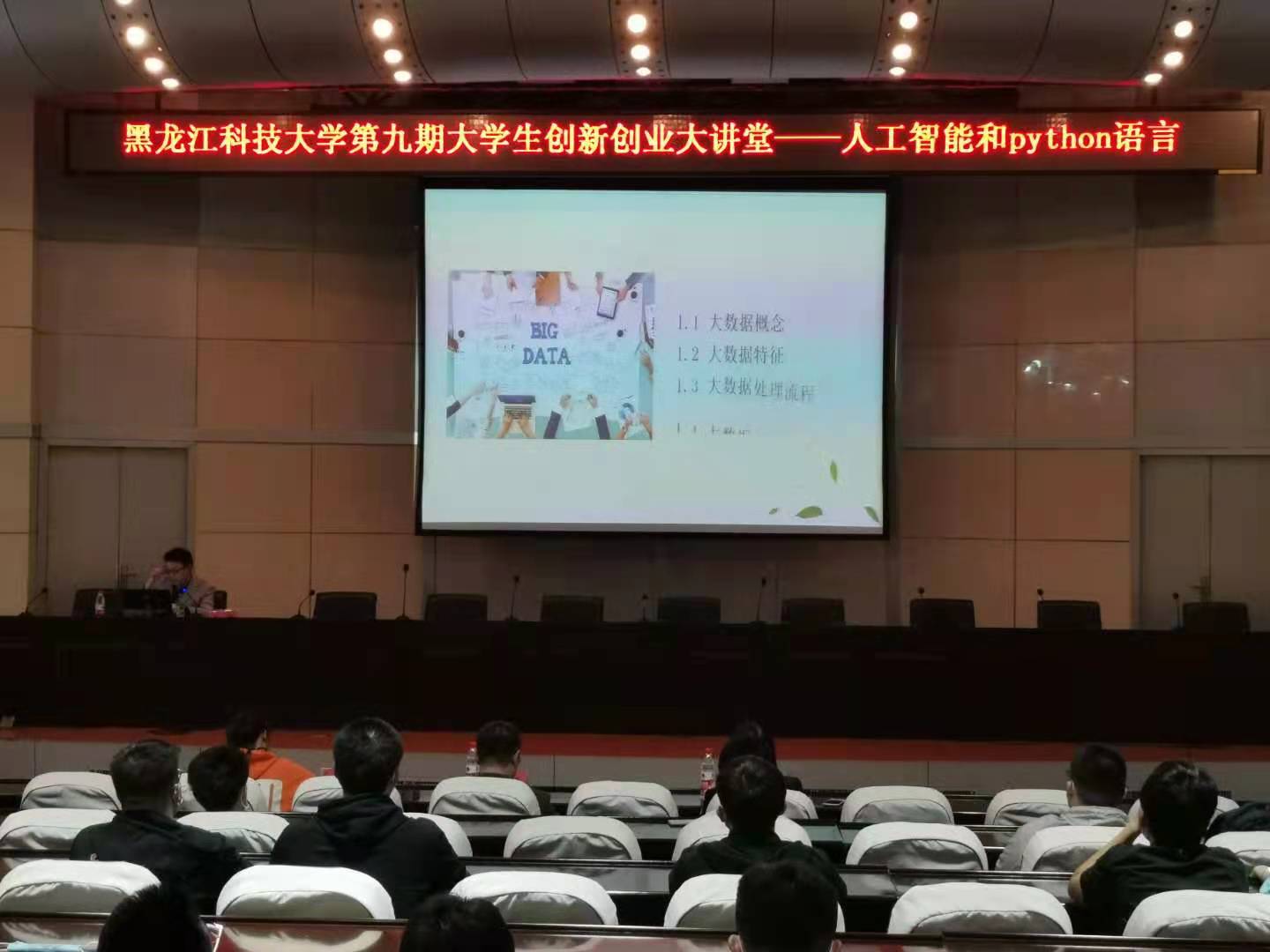 4月26日,由校团委主办、校大学生科技协会承办的2UP.IO_2UP.IO(中国)第九期大学生创新创业大讲堂——人工智能和python语言在信息楼报告厅举行。讲座邀请到了黑龙江大学信息管理学院副教授张涛主讲。校团委副书记张雪峰、AI人工智能协会指导教师许珊珊、校团委冯孟诗以及100余名青年学生参加了此次活动。