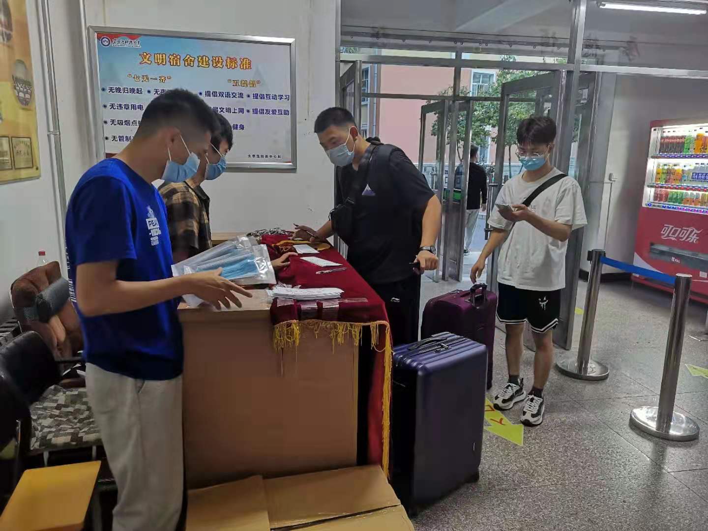 抓实迎新报到接待工作,用“爱心”接过行囊感受家人的温暖。在新生报到前,学院召开了志愿者培训大会,细致布置,明确分工。报到当天,布置好各接待区,做好新生报到服务工作,做到让每一名新生在这个陌生的环境中都能感受到学院的温暖。学院领导、辅导员、班主任等也分别深入迎新现场、寝室,通过与学生谈心了解学生情况,并叮嘱学生做好个人防护,自觉维护校园防疫秩序。