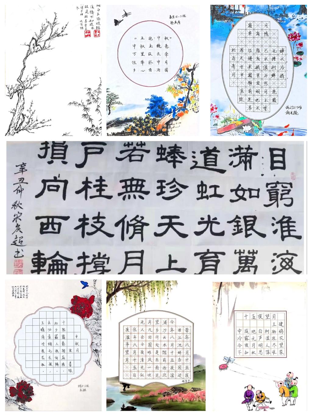 情浓中秋,翰墨飘香。为丰富学生们的文化生活,进一步拉近他们与中国传统文化的距离,中秋佳节之际,通过“情浓中秋,翰墨飘香”活动,以书画会友、以笔墨传情,用书法雅集的形式共庆中秋,书写团圆诗篇。学生们以中秋节传统习俗、中秋节诗词等为题材,运用绘画、软笔书法、硬笔书法等多种表现方式进行作品创作。学生的作品在版面设计、图案构思、色彩搭配、内容创意等方面各具特色,一个个匠心唯美的视角,一件件精美绝伦的作品,从不同的角度描绘了中国共产党的光辉成就,展现了他们积极向上的精神文明风貌,表达了他们对亲人的思念和对祖国的热爱。