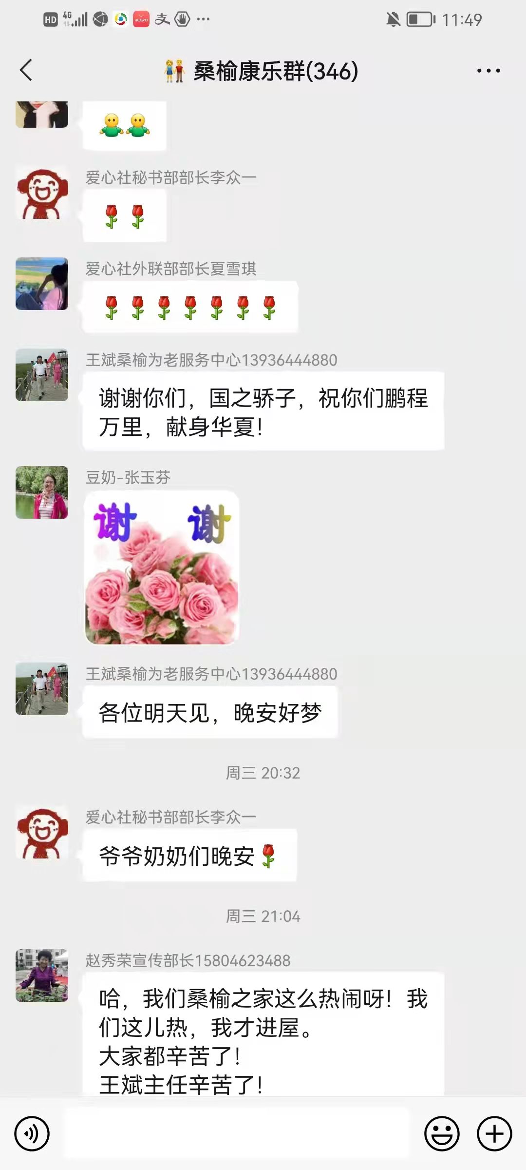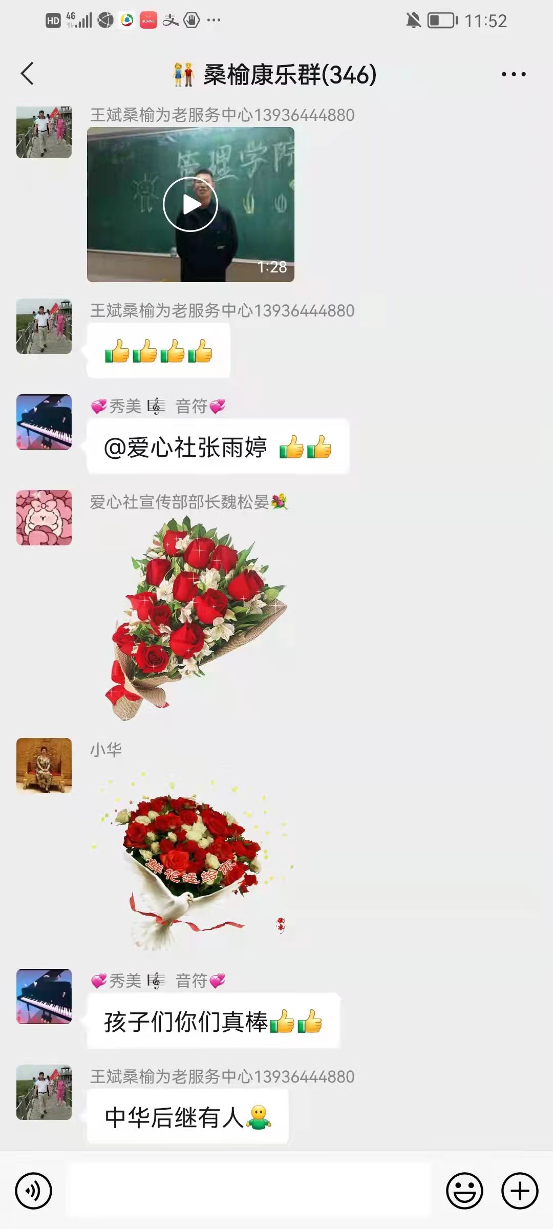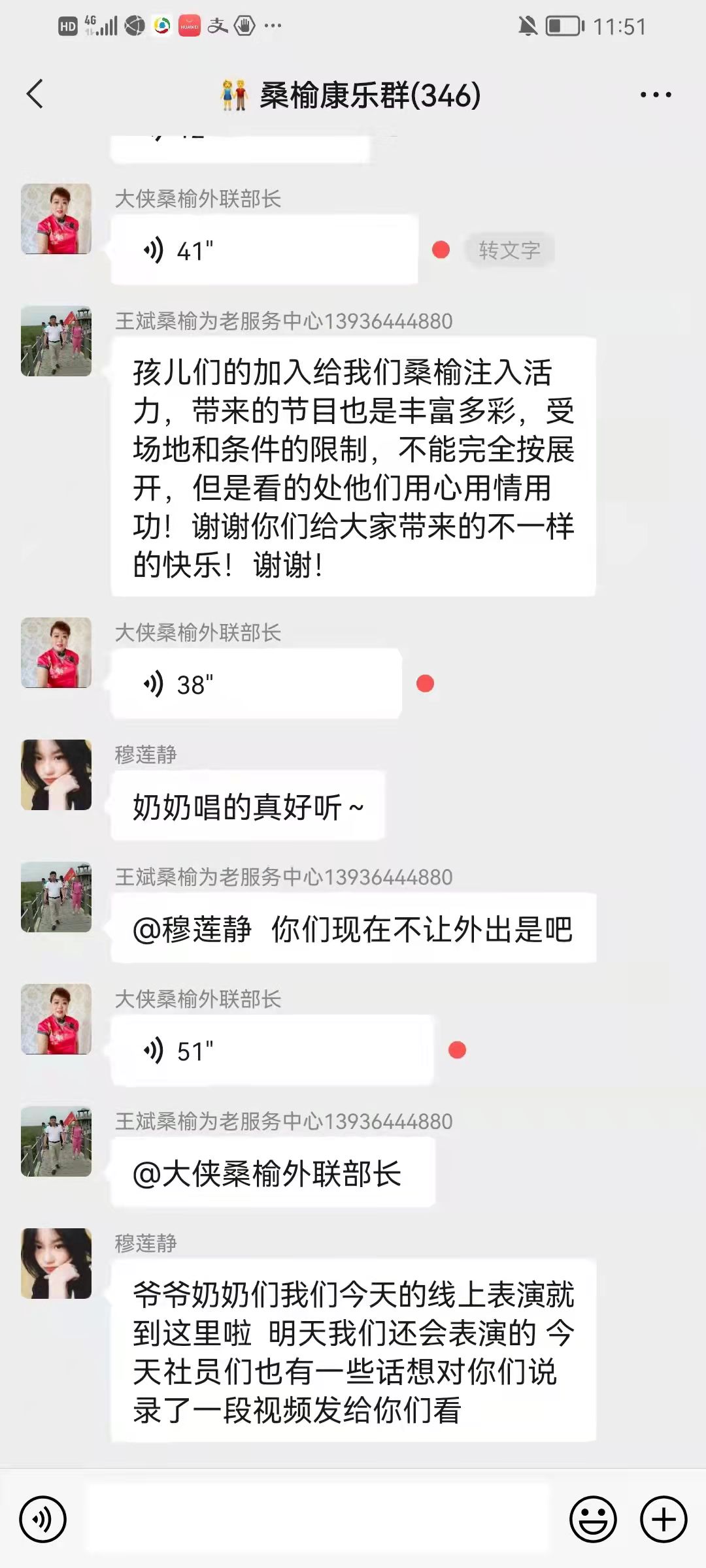 为了缓解他们居家期间情绪紧张的问题,爱心社的同学们以微信群内线上联欢的形式,录制了《太阳照常升起》口琴独奏等7个精彩的小节目,在学生们的带动下,群里的老人纷纷献唱《我和我的祖国》等歌曲,一同为祖国庆生。这种线上支持缓解了社区老人的心理压力,他们居家抗疫带来了欢声笑语。最后学生们录制了一个送出祝福的集体视频,把美好的祝愿送给了老人们,为这次线上服务画上了完美的句号。两天共服务7个小时,累计服务638人次。这次线上服务把抗击疫情必胜的信心带给了老人们,也体现了2UP.IO_2UP.IO(中国)大学生的责任感和精神风貌。