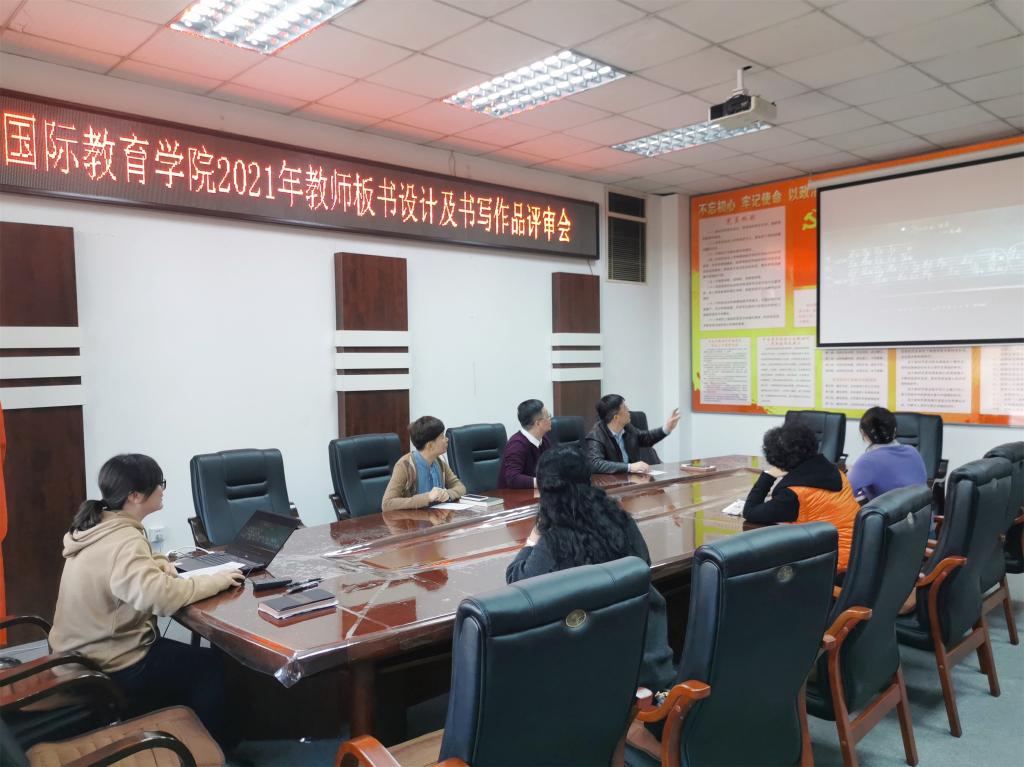 为了加强教师队伍建设,强化教师基本功训练,培养教师具有“扎实学识”,国际教育学院在“教案设计大赛”后开展了“板书设计及书写大赛”。经过近1个月的准备和作品收集,学院教学指导委员会于2021年10月27日在科高0606会议室对教师板书设计及书写作品进行了评审。