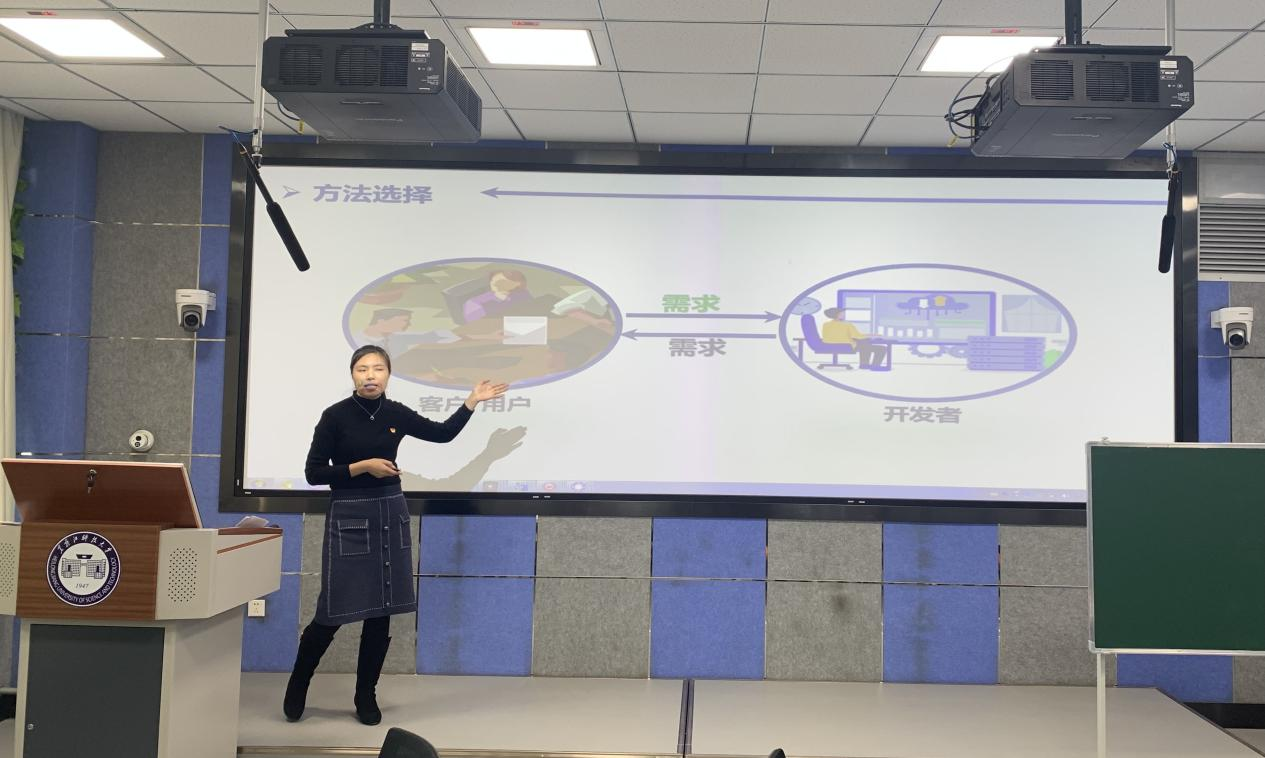为贯彻落实学校教学工作的总要求,以立德树人为根本,以提高教师专业能力与水平为主线,以深化评估整改为契机,充分发挥优秀教师引领示范作用。11月29日至30日,计算机学院2021年教师教学大赛在主楼智慧教室举行,由学院各教研室严格选拔出的4位教师参加比赛。教务处副处长邢世海、评估中心副主任袁芳、计算机学院党委书记吴新文、院长赵金宪以及副院长冯福生担任了此次比赛的评委。