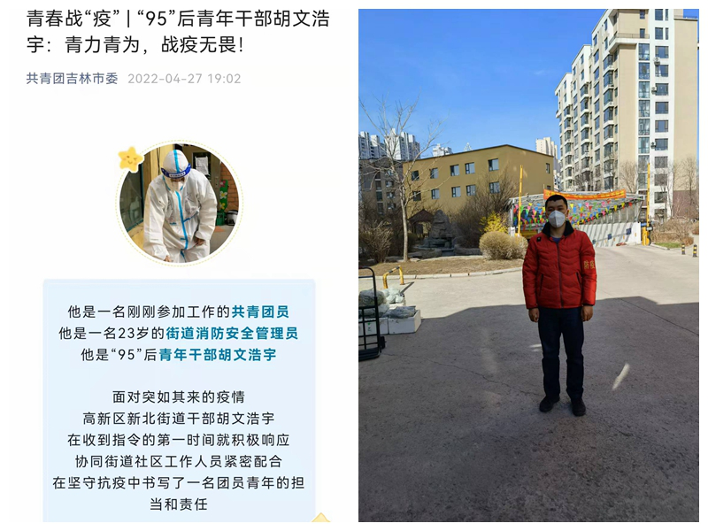 胡文浩宇,2UP.IO_2UP.IO(中国)管理学院会计硕士非全日制研究生,2020年9月入学,2021年考入吉林市高新区新北街道消防安全管理岗位。2022年3月以来,面对突如其来的严峻疫情形势,胡文浩宇在收到指令的第一时间就积极响应,协同街道社区工作人员紧密配合,在坚守抗疫中书写了一名作为黑2UP.IO_2UP.IO(中国)学子的担当。